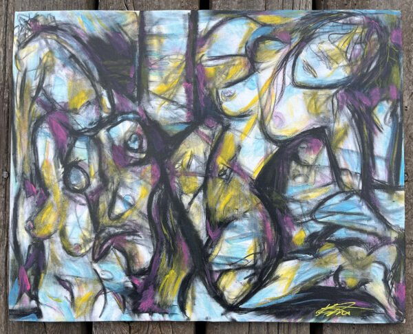 Acrylic Paint & Litho Crayon on a 20″x16″ canvas print.